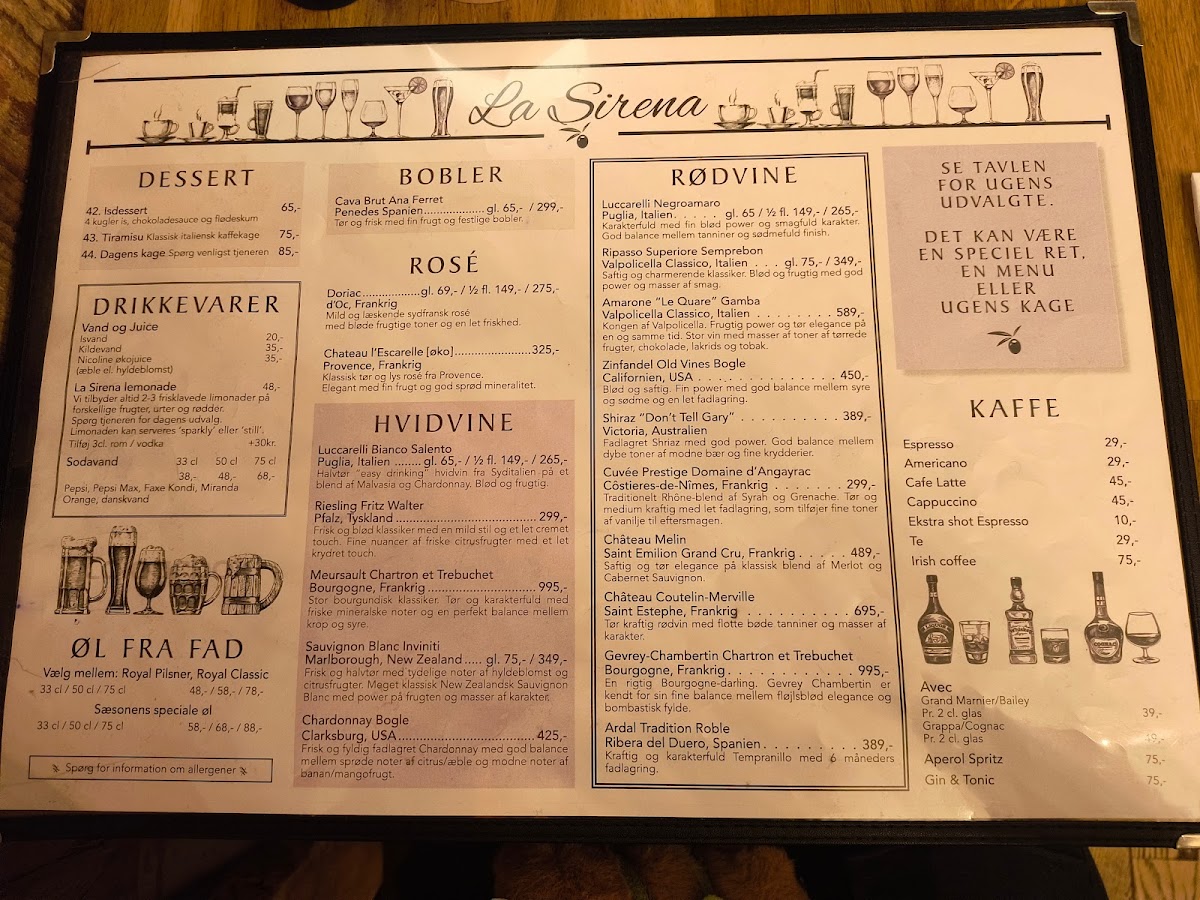 Introducing the menu at La Sirena - 2920 Charlottenlund is a delightful journey through a cozy dining experience. Nestled on Jægersborg Alle, this charming venue offers a diverse selection of dishes that cater to all tastes. Highlights include the highly recommended potato wedges paired with chili mayonnaise and the renowned chicken burger, celebrated for its fantastic flavor and generous portion.